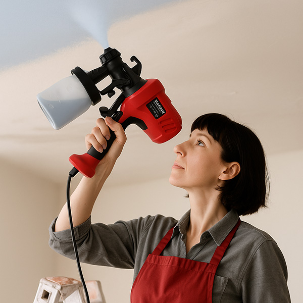 Špeciálna tryska vytvára jemnú hmlu farby, ktorá sa rovnomerne usádza bez šmúh alebo škvŕn. Nástroj vytvára pocit, že každá oblasť sa maľuje sama „tak, ako má“, bez ohľadu na materiál, skúsenosti používateľa alebo smer pohybu.