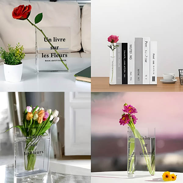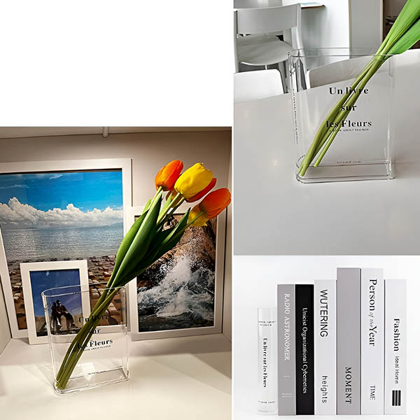 Váza je vyrobená z 3 mm hrubého ABS plastu, ktorý imituje vzhľad skla a zároveň ponúka zvýšenú trvanlivosť a odolnosť proti oderkom. To zaručuje, že váza v tvare knihy zostane krásna a funkčná po dlhé roky.
