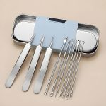 Nekĺzavý nástroj má dva zahnuté konce, ktoré umožňujú ľahko odstrániť čierne a biele bodky.