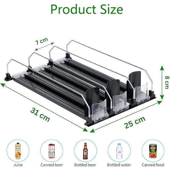 📦 Ušetrí priestor v chladničke a zároveň udržiava plechovky a fĺše pekne usporiadané