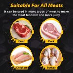 Rýchly lisovací zmäkčovač mäsa MEATZI robí zmäkčovanie mäsa rýchlym a jednoduchým, pričom zabezpečí, že vaše kúsky budú vždy dokonale jemné – či už ide o steak, kuracie alebo bravčové mäso.