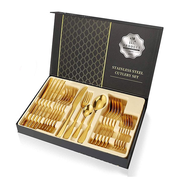 Naša luxusná súprava príborov je vyrobená z prvotriednych materiálov a sľubuje odolnosť a dlhotrvajúcu funkčnosť.