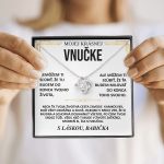 Exkluzívna kartička so správou: Nemôžem ti sľúbiť, že tu budem do konca tvojho života, ale môžem ti sľúbiť, že ťa budem milovať do konca toho svojho. Nech ťa tvoja životná cesta zavedie kamkoľvek, buď vždy odvážna a silná. Hlboko v srdci ver, že si múdra a schopná dosiahnuť všetko, po čom tvoje srdce túži. Vždy, keď ti bude v živote zaťažko, spomeň si, čia si vnučka. S LÁSKOU, BABKA Podrobnosti o náhrdelníku s hviezdou s vankúšikovým výbrusom: