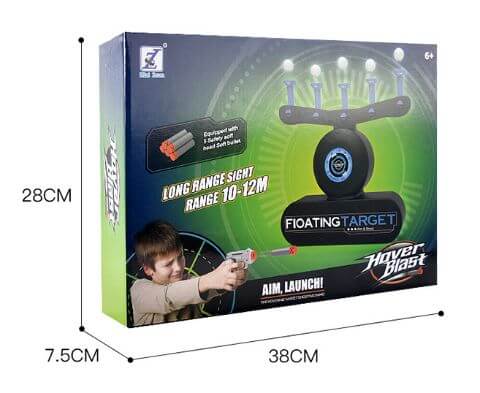 - Obsah balenia: 1 vznášajúci terč, 1 hračkárska vzduchová pištoľ, 3 hračkárske náboje