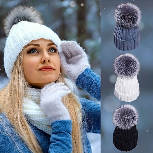 Teplá pletená čiapka s bambuľkou | GLACIA