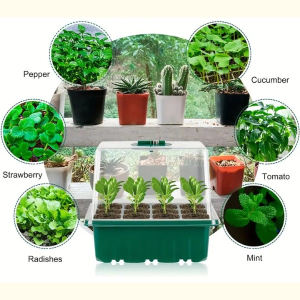 Každá tácka má 12 otvorov a viečko s vetracím prepínačom. Teraz môžete kontrolovať úroveň vlhkosti a zabezpečiť najlepšie prostredie pre vaše sadenice. Pestujte zdravé, dobre prevzdušnené korene pre silnejšie rastliny.
